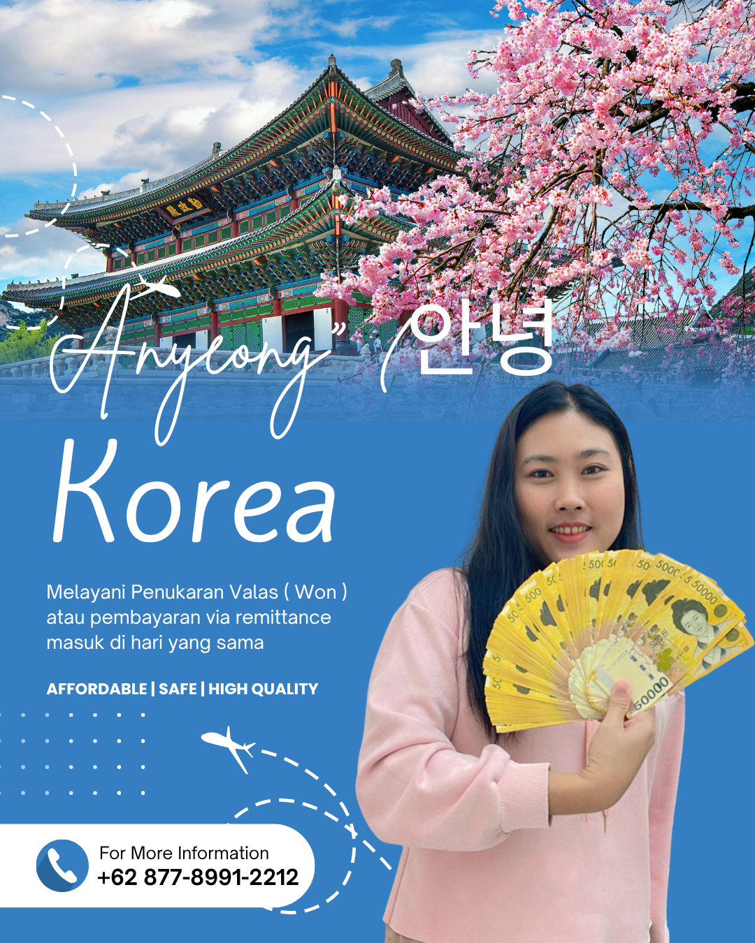Dapatkan layanan penukaran valuta asing terpercaya dengan rate kompetitif dari 30 negara. Hubungi kami untuk informasi lebih lanjut.